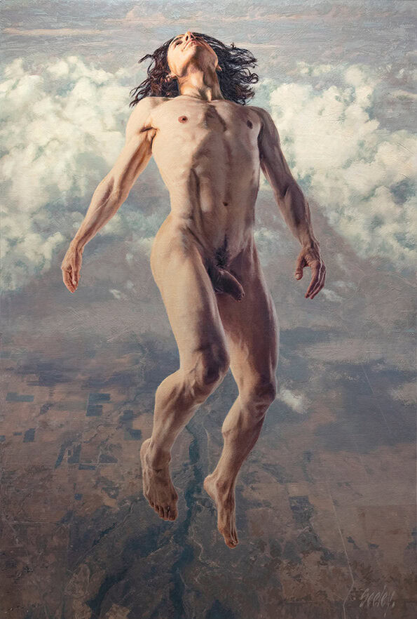 Dave’s work is a celebration of human form in its potential for beauty and expressiveness. Obscured ephemeral glimpses of perfection fuel his search for subjects and paint marks. In his words, “God — and the devil — is in the details.” Dave’s work often explores the human relationship to our world, in both a physical and spiritual sense. “I’m obsessed with our timeless ‘elemental’ connection to our world, and the alchemical way our minds form imperfect explanations and mythologies to rationalize it. My own sensibilities tend toward agnosticism and science, but our profound need as a species to make sense of ourselves is essential to our psyche. So, while our narratives are inherently fanciful, our need to explain our existence is certain.”