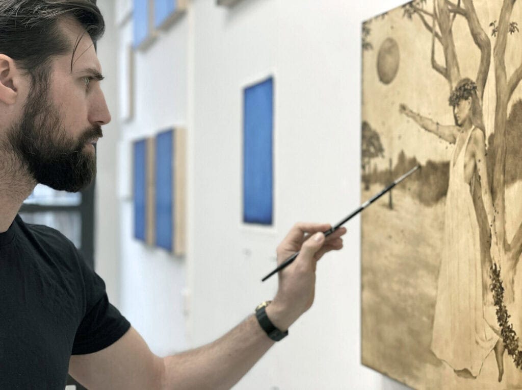 Brad Kunkle (b. 1978, Lehighton, Pennsylvania) is an internationally recognized contemporary artist known for his distinctive use of gold and silver leaf in oil painting. His career gained significant momentum in 2010 when his debut solo exhibition in New York City sold out on opening night, marking his emergence onto the international art stage.