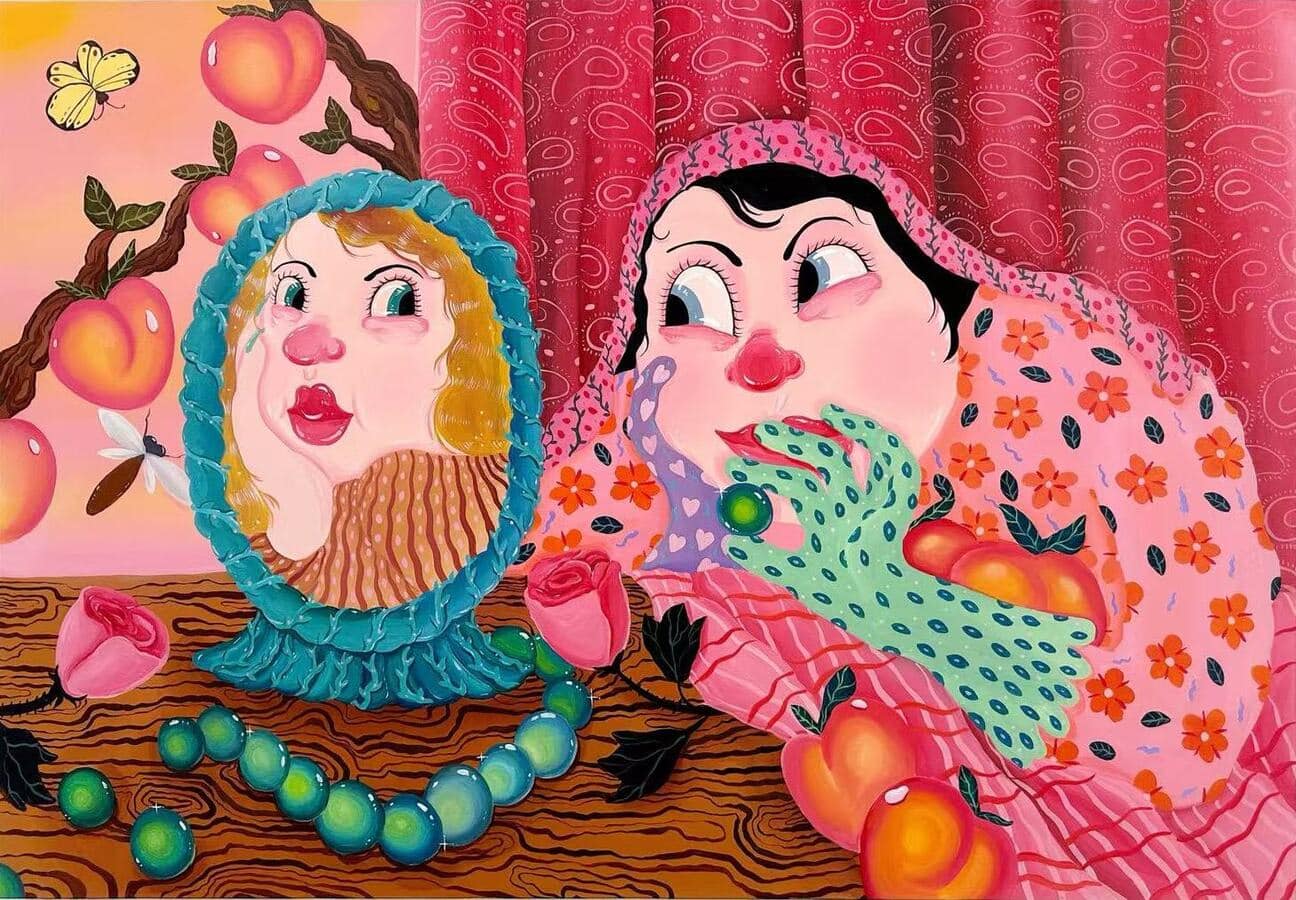 Additional themes include family dysfunction, the performance of happiness, soap opera melodrama, identities, social class anxiety, and the grotesque spectacle of consumer capitalism. Through camp aesthetics and dark humor, Du creates a surreal commentary on urban farce, using vivid colors and flat imagery to mask deeper critiques of impermanence, social conformity, and the psychological toll of rapid modernization. His work resonates with audiences interested in contemporary Asian art, social satire, pop surrealism, gender studies, and cultural commentary on China’s transformation.
